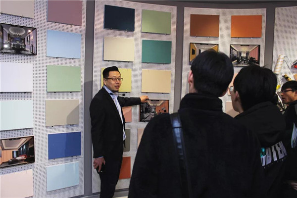 參觀完總部后,在解說員的帶領(lǐng)下,河北環(huán)境工程學(xué)院一行人來到了我公司品牌體驗(yàn)展示中心。對(duì)于我司相關(guān)環(huán)保產(chǎn)品大家都還比較陌生,常凱???、李勇劍李總分別對(duì)室內(nèi)污染物治理展廳、企業(yè)綠色裝飾材料展廳進(jìn)行了細(xì)致介紹,讓大家對(duì)凈化原理及環(huán)保材料等有了一個(gè)全新的認(rèn)識(shí)!